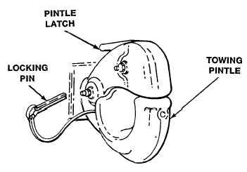 Remove locking pin, pull up on pintle latch, and open pintle.