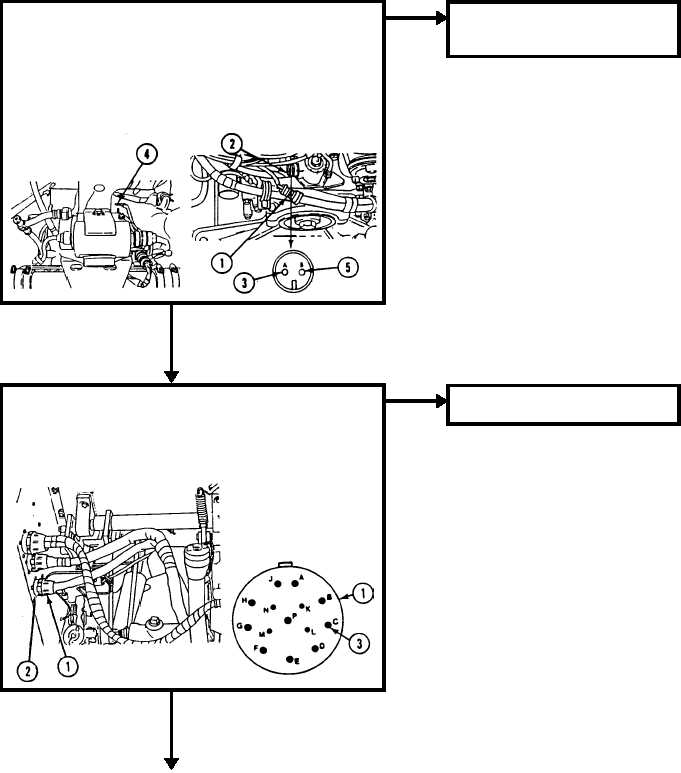 3. Measure voltage from front main harness jack (2) pin C (3) and
