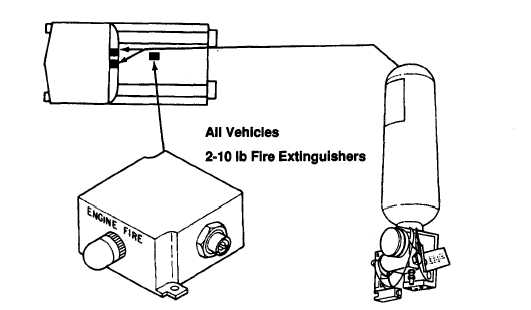The engine compartment has two fire extinguishers, One fire extinguisher interfaces
