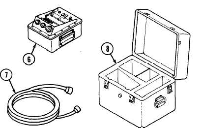 Stow VTM (6) and cable W1 (7) in transit case (8).