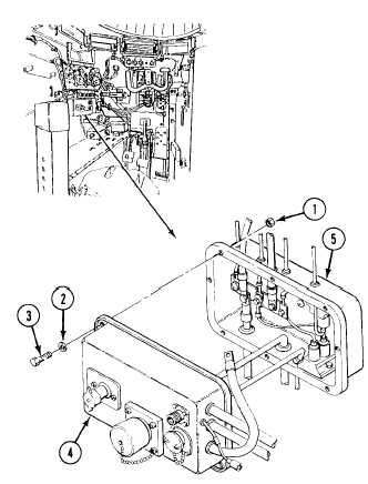 Remove eight locknuts (1), washers (2), screws (3) and master switch panel (4) from distribution box (5). Discard