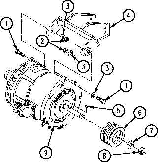 (9). Secure with new nut (8) and washer (7).