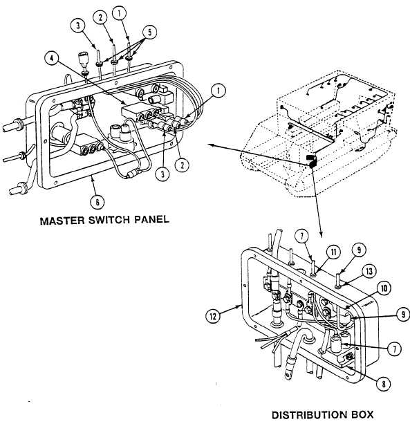 63. Remove circuit 28 lead (1), circuit 29 lead (2), circuit 30 lead (3) and three grommets (5) from master switch panel (6).