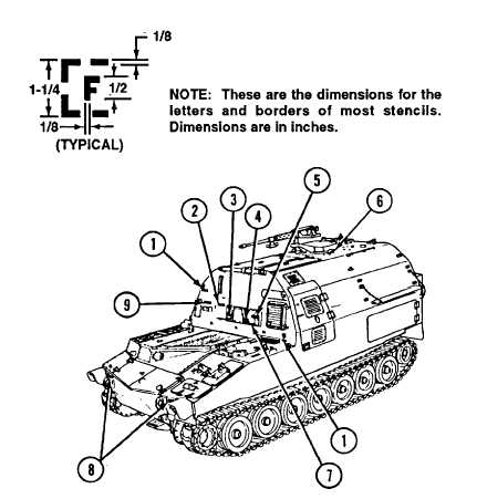Apply stencils to clean, painted surfaces only. Use black enamel (Class A, specification TT-E -489). When possible,
